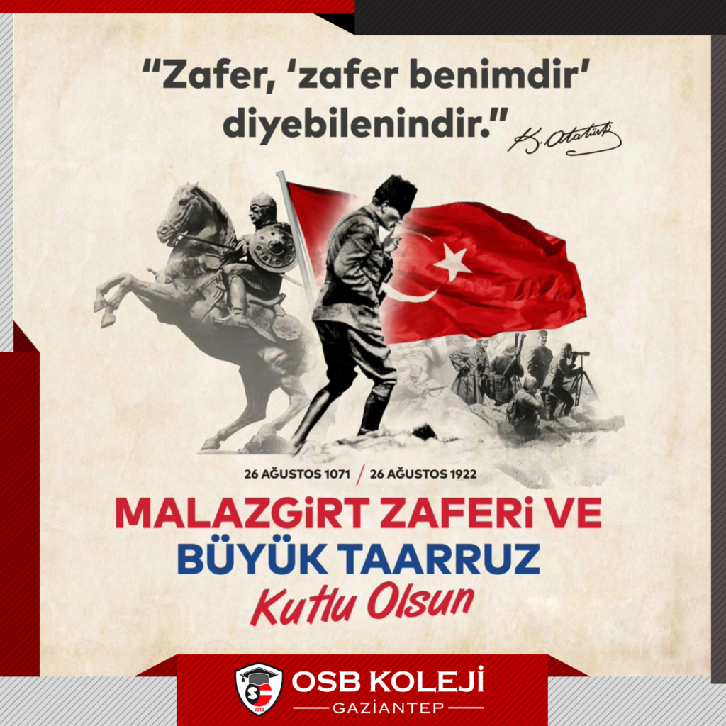 Malazgirt Zaferi (1071) ve Büyük Taarruz (1922), Türklerin Anadolu’ya yerleşmesini sağlayan ve bağımsızlıklarını kazanarak modern Türkiye Cumhuriyeti’nin kurulmasına zemin hazırlayan iki önemli askeri zaferdir. Bu zaferlerimizin yıldönümünde vatan için canını veren tüm şehitlerimizi rahmet ve minnetle anıyoruz. 🇹🇷