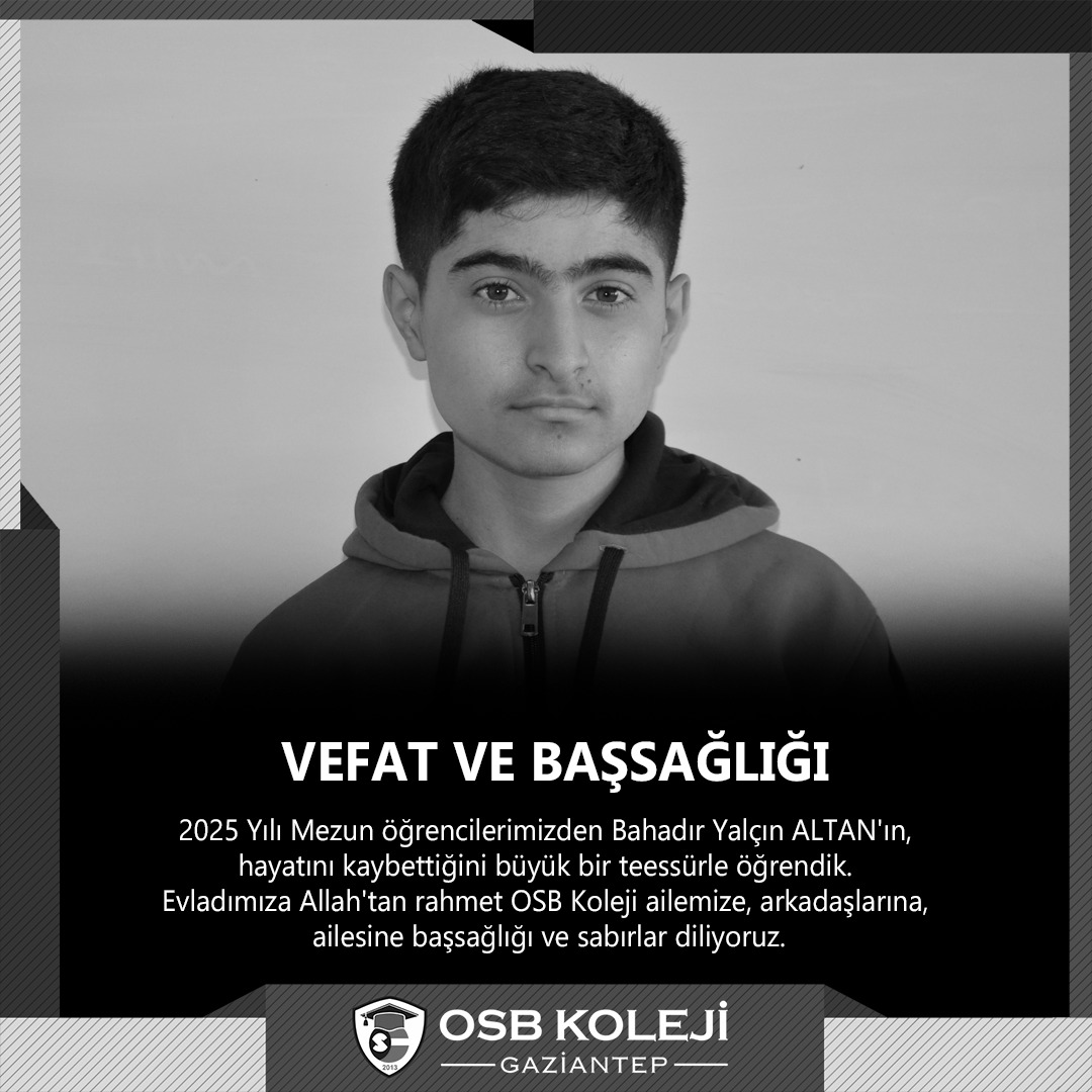 Vefat Başsağlığı osb koleji 4 2025 Yılı Mezun öğrencilerimizden Bahadır Yalçın ALTAN’ın, hayatını kaybettiğini büyük bir teessürle öğrendik. Evladımıza Allah’tan rahmet OSB Koleji ailemize, arkadaşlarına, ailesine başsağlığı ve sabırlar diliyoruz. 11. ULUSLARARASI KONYA ROBOT YARIŞMASI 27 May, 2017 GAOSBMTAL MOTORLU ARAÇLAR TEKNOLOJİSİ ALAN SEMİNERLERİ 13 Nis, 2017 GAOSBMTAL 12 MART İSTİKLAL MARŞI KABULÜ VE M. AKİF ERSOY’U ANMA” PROGRAMI DÜZENLENDİ 17 Mar, 2017 GAOSBMTAL Sınav Takvimi 14 Mar, 2017 gaosbmtal 25 ARALIK DART TURNUVASI KURTULUŞ KUPASINI KİMSEYE BIRAKMADIK 27 Ara, 2016 admin MENNAN MAKİNE TEKNİK GEZİSİ 27 Ara, 2016 admin
